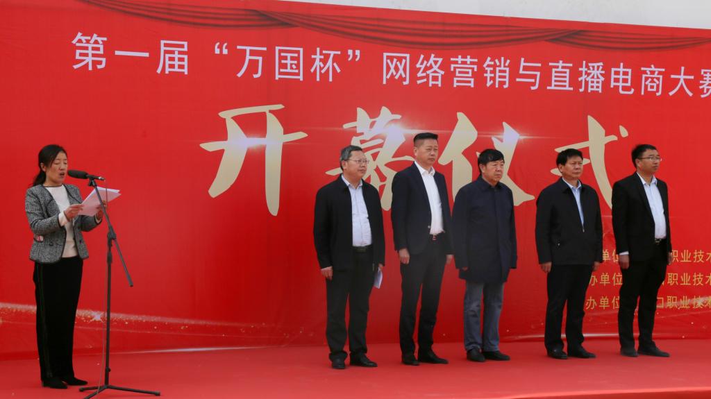 3月15日上午,002cc白菜资讯第一届“万国杯”网络营销与直播电商大赛开幕式在开元校区隆重举行。学校党委书记刘士欣、校长李清臣,副校长李明臣,河南万国集团董事长吕辉及相关负责人出席开幕式。002cc白菜资讯万国汽车商学院师生、参赛选手和裁判员等参加活动。