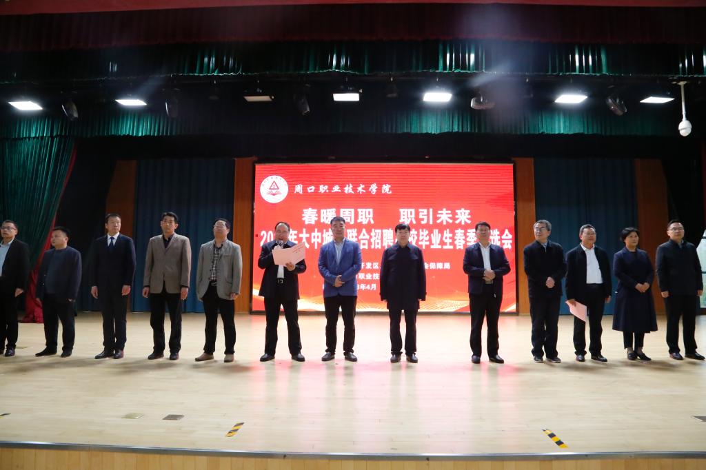副校长李明臣代表学校致辞。他表示,就业是民生之本,人才资源是第一资源。我们将与周口市人社局、开发区及数百家行业企业加强联系与合作,拓岗位、优服务、兜底线,全力以赴做好就业工作,为社会输送高素质技术技能人才,为区域经济发展贡献周职力量。