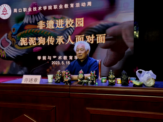 为贯彻落实党的二十大精神,根据《中共河南省委教育工作委员会 河南省教育厅关于做好2023年河南省职业教育活动周相关工作的通知》要求及学校统一安排部署,5月15日下午,学前与艺术教育学院邀请国家级非物质文化遗产项目——泥泥狗的传承人许述章先生来我院开展讲座。副校长王隼出席讲座,学前与艺术教育学院全体班子成员及师生代表参加,讲座由科研外事处处长李民主持。