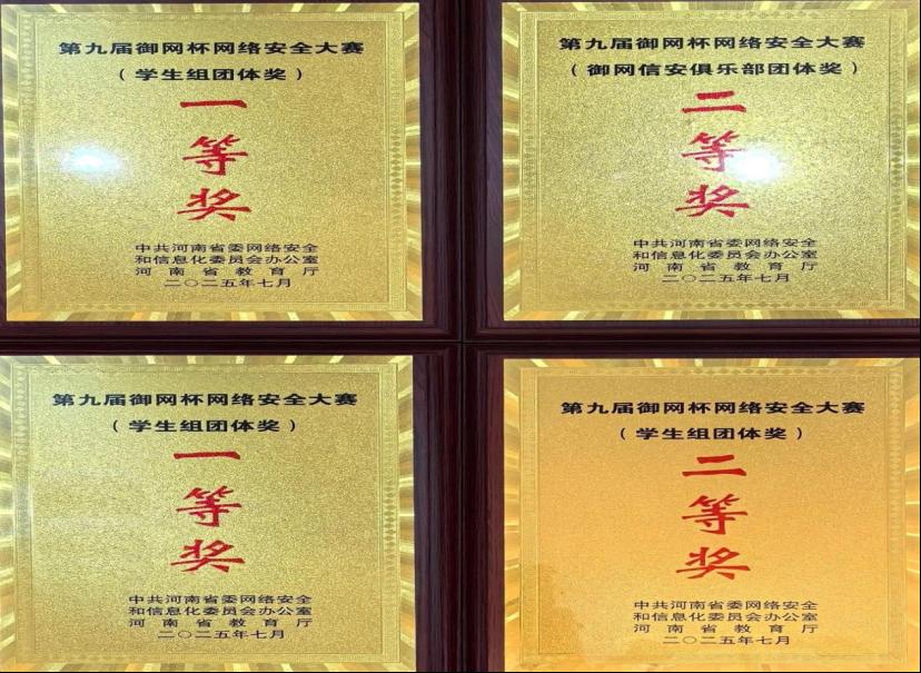 第九届“御网杯”网络安全大赛被列入河南省高等学校大学生学科竞赛省级名录A类竞赛,在全学科全专业各类比赛中排名第7位。本次大赛以“向新向善、智创未来”为主题,共汇聚全国28个省、369所院校的1.8万余名选手同台竞技,参赛规模创历史新高。决赛采用“应急响应+实网渗透+安全防御”的实战形式,全面考察选手的综合能力。